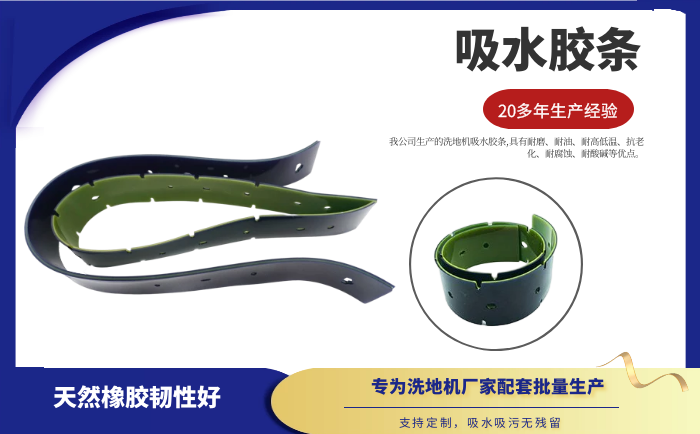 產(chǎn)品說(shuō)明:吸水膠條是洗地機(jī)吸水扒上的重要部件,作用就是與地面接觸,產(chǎn)生一個(gè)密封的空間,把地面上的污水通過(guò)風(fēng)機(jī)進(jìn)行回收。吸水膠條一般分為耐油型(進(jìn)口PU原料)和普通型(進(jìn)口NR原料)兩種。